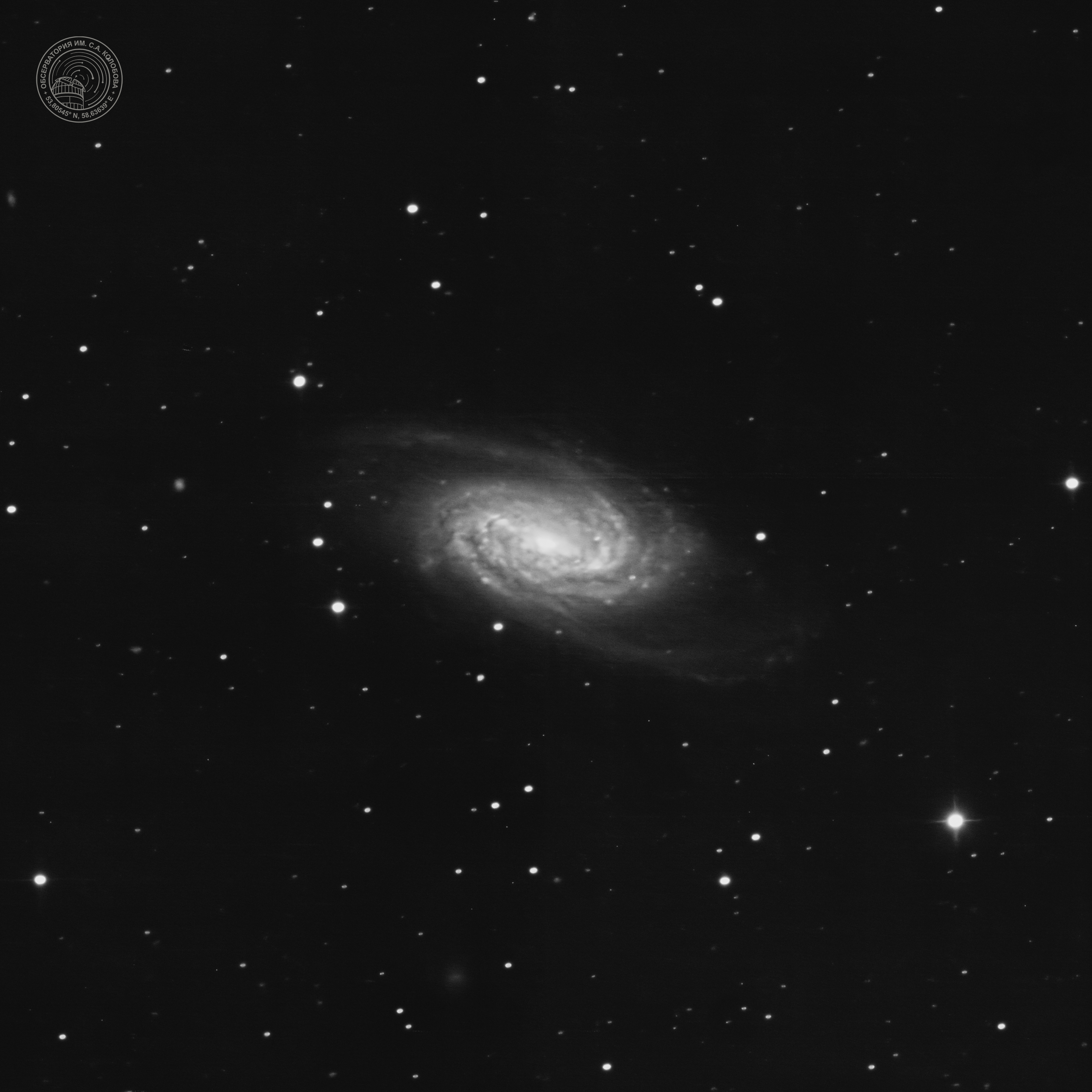 Galaxy NGC 2903 — a nearby isolated barred spiral galaxy located in the constellation Leo. The image was captured on 24.03.2025 at the S. A. Kolobov Observatory using an ASTROSIB RC500 telescope on an ASTROSIB AVM-700 mount with an SBIG Aluma AC4040-Ultimate (C2) astrocamera. A Luminance filter was used, with a total exposure of 45 minutes.