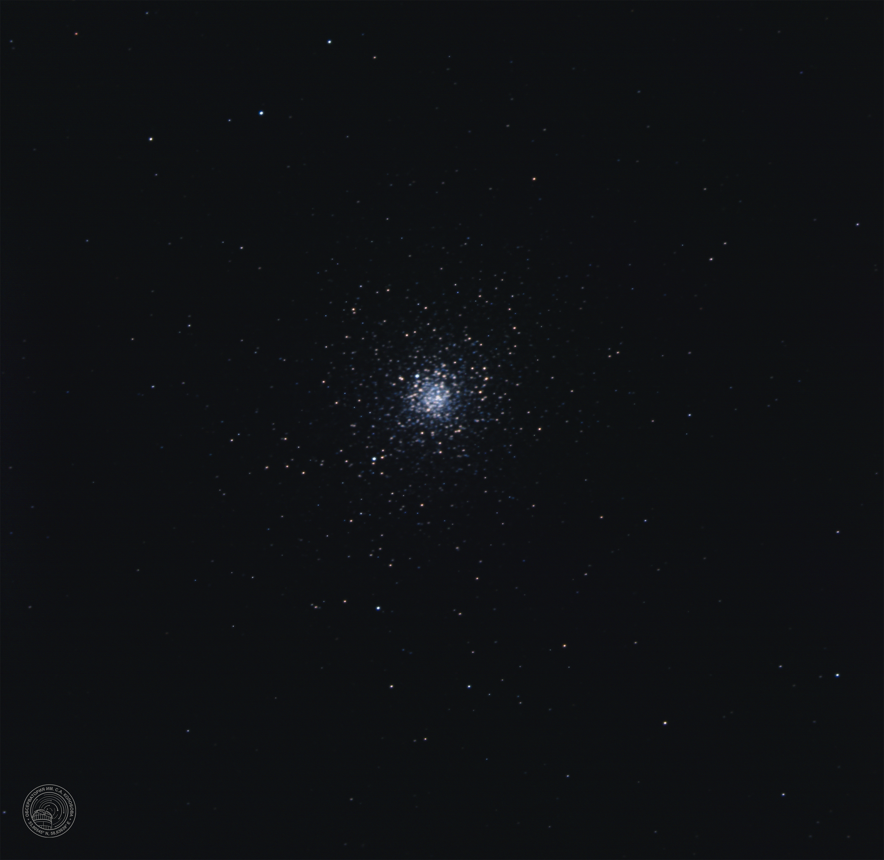 Star cluster M 5 (NGC 5904) — a globular star cluster in the constellation Serpens. The image was captured on 16.05.2025 at the S. A. Kolobov Observatory using an ASTROSIB RC500 telescope on an ASTROSIB AVM-700 mount with an SBIG Aluma AC4040-Ultimate (C2) astrocamera. An LRGB filter set was used, with a total exposure of 700 seconds.