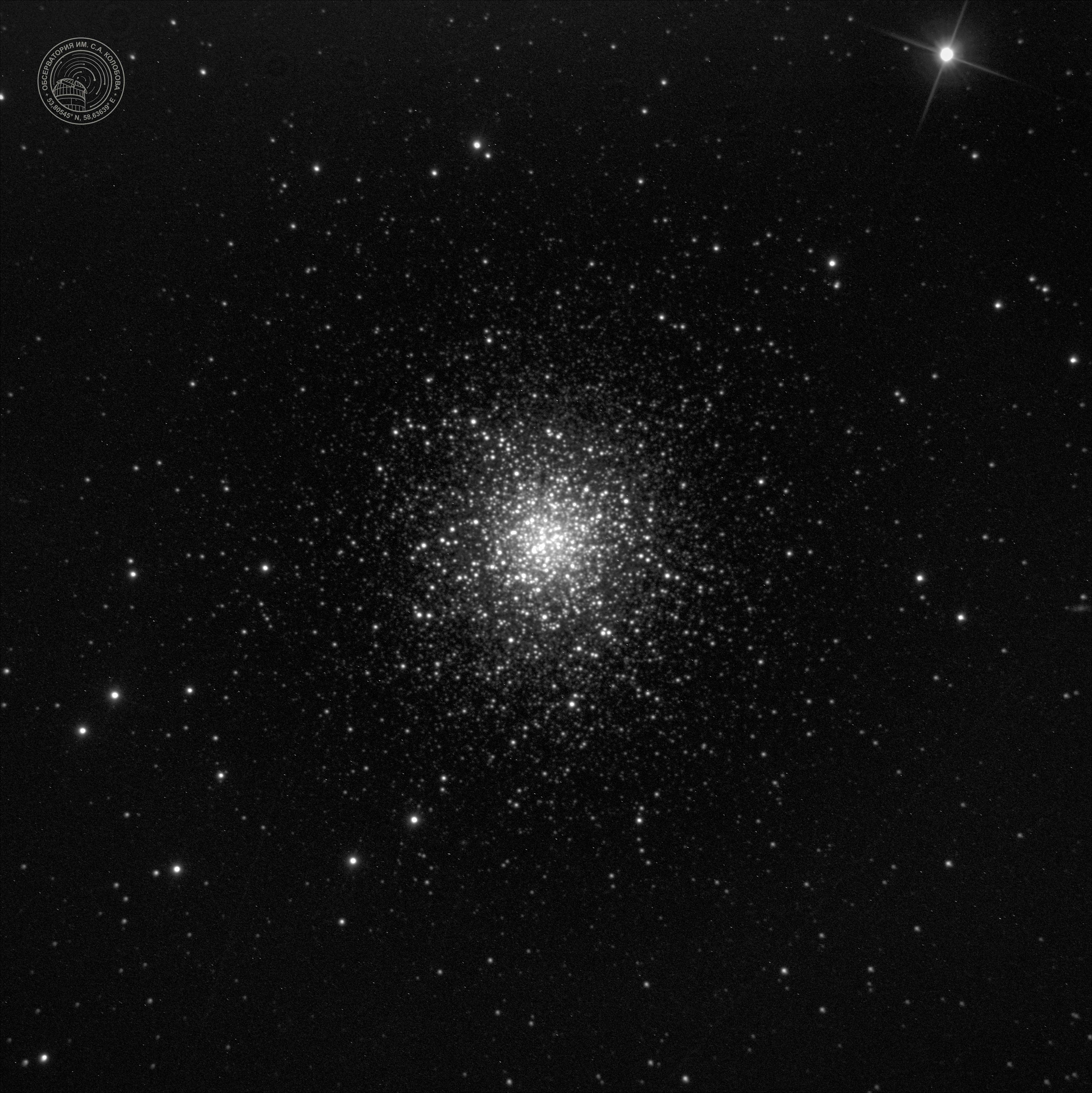 A globular star cluster in the constellation Hercules. Contains 300 thousand stars. It is one of the brightest deep-sky objects in the Northern Hemisphere. Apparent magnitude: 5.8. Diameter: 145 light-years. Distance: 25,000 light-years.